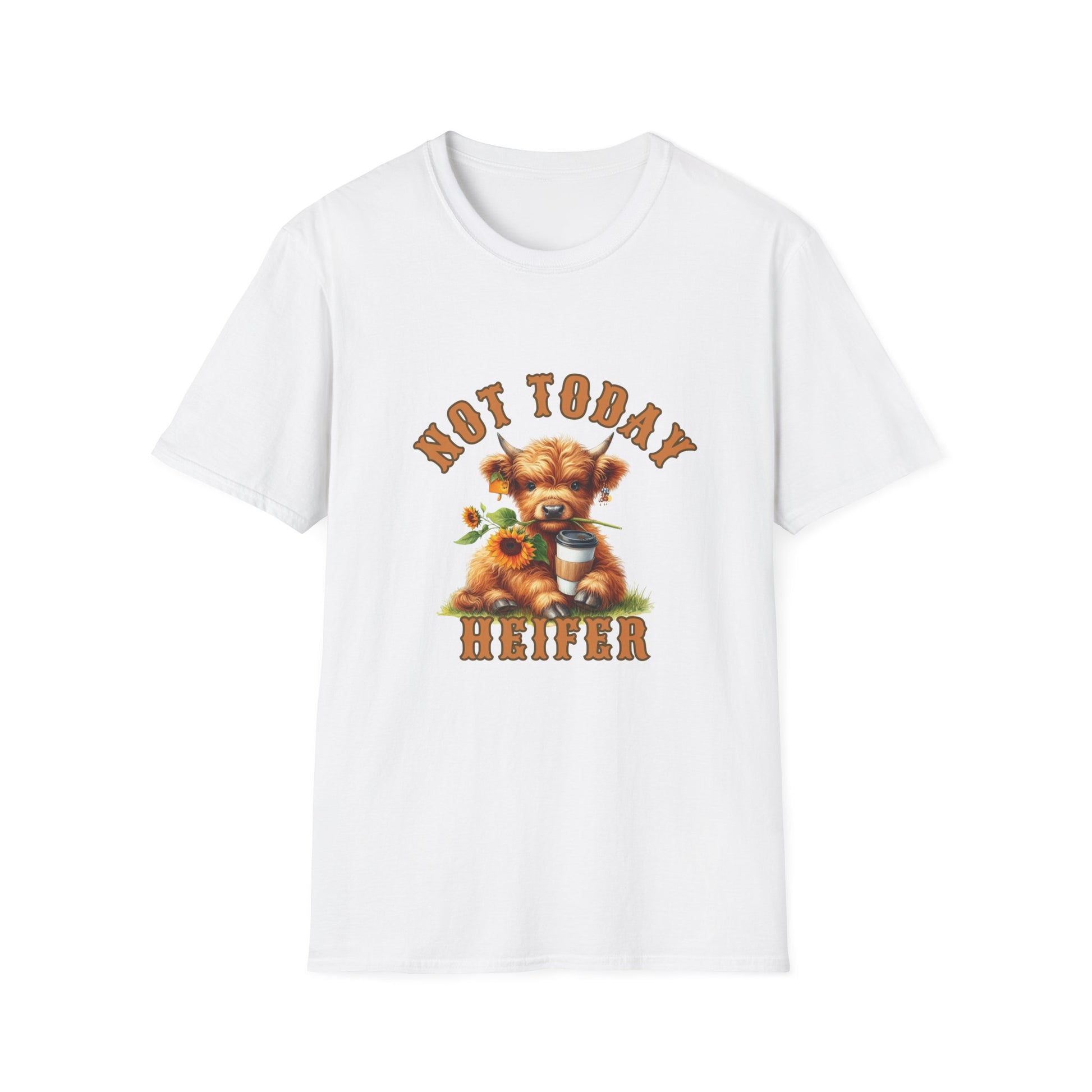 A sassy and fun tee perfect for those days when you're not in the mood for any nonsense. The 'Not today heifer' design adds a touch of humor and attitude to your outfit. This unisex softstyle t-shirt is made from durable and smooth fabric, perfect for printing, and feels lightweight and comfortable to wear all year round. Ideal for adults looking for a casual and expressive piece for their wardrobe.